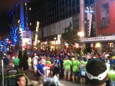 My view of the finish shoot from the stage outside RiRa. Thanks to our local Triathlon Club, The Louisville Landsharks for renting such a cool spot!