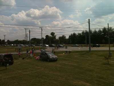 View from the top of the bleachers at Oldham County HS – mile 65 of the bike.