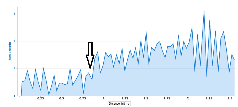 Note the difference in my speed after the turnaround point (shown by the arrow).