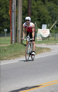 Coming off of the second loop – around mile 85 or so, I started to get really uncomfortable. Without getting too graphic, the spot that actually rests on my bike saddle was getting really sore. I tried to reposition myself, but it did no good. I knew that the last 10 miles were flat, and I wanted to make sure that I could stay in aero position during this stretch and keep my power steady in order to get as much speed as possible. As I passed Zorn Ave on River Road (around mile 109), my lower back was getting really tight and I had to stand-up and stretch it for just a few seconds. Of course, as soon as I stand up, I see Jessica and the kids on the side of the road. She’s snapping pictures of me riding in the most awkward looking position ever (see picture to the right). It was actually kind of funny. I managed to sit back in my seat and wave to them as I went by.
