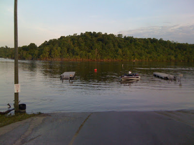 It felt cold, but was definitely not as cold. The water was way up from all the recent rain. See the picture below…those two docks are normally at the end of the parking lot.