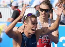 Hunter Kemper started making his move on the run, while Chrabot and Shoemaker faded. Kemper pulled off a 30:27 run split (5th best run) and surprised everyone by being the first American to cross the line and came in 5th overall. The real surprise was that entering the last lap on the run, Manuel was in 10th place overall, without another American between himself and Kemper. Without knowing exactly what position he was in, he just gave it all he had and ended up coming in 9th overall…good enough to become a member of the 2012 USA Olympic team! The best part was once he crossed the finish line, you could see him counting the number of guys that had already finished. When he realized that there were only eight ahead of him, he had this reaction: