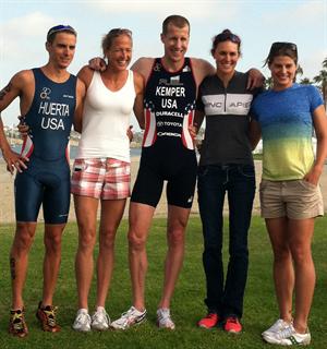 From left: Manuel Huerta, Laura Bennett, Hunter Kemper, Gwen Jorgensen and Sarah Groff