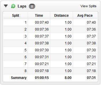 8.0 mile Progressive Run in 1:00:15 (7:31 min/mile pace)