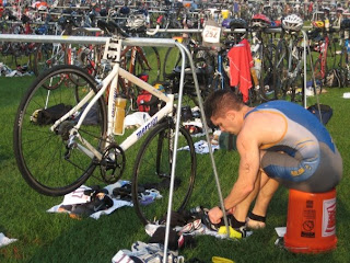 Heading out of T2 on the run (thanks for the pic Mom!)